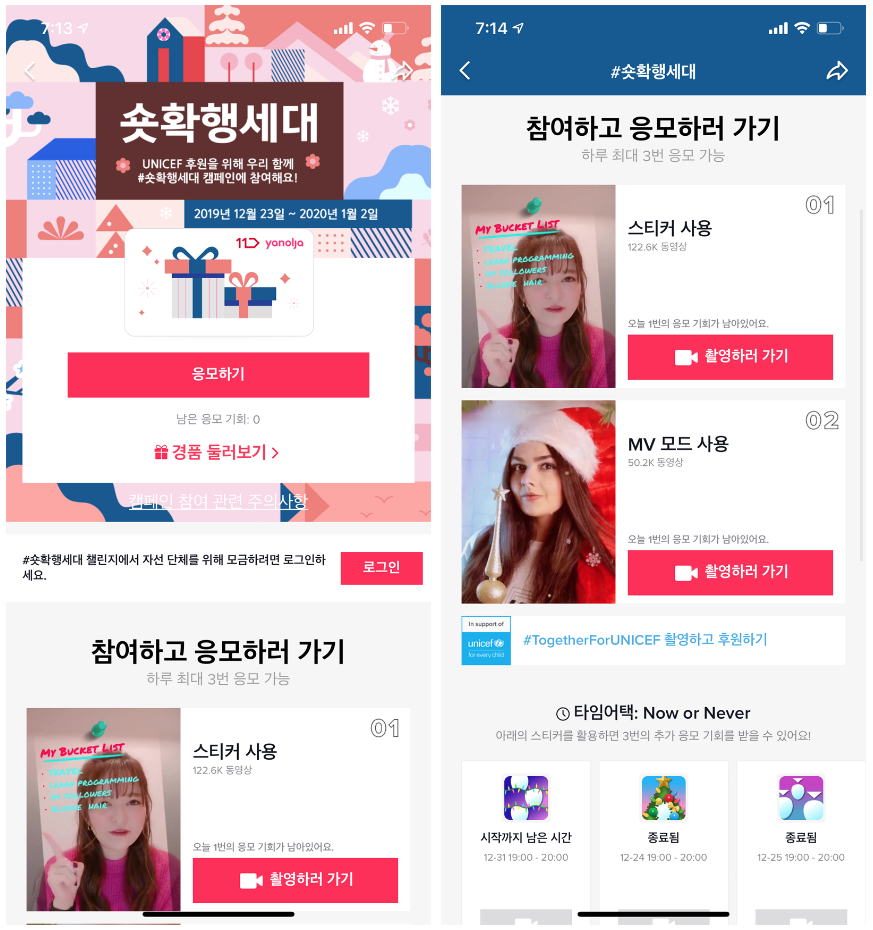 참고로 유니세프 에디션 스티커로 150만개의 영상이 모이면 기부가 되는 좋은일에 기여도 할 수 있습니다.