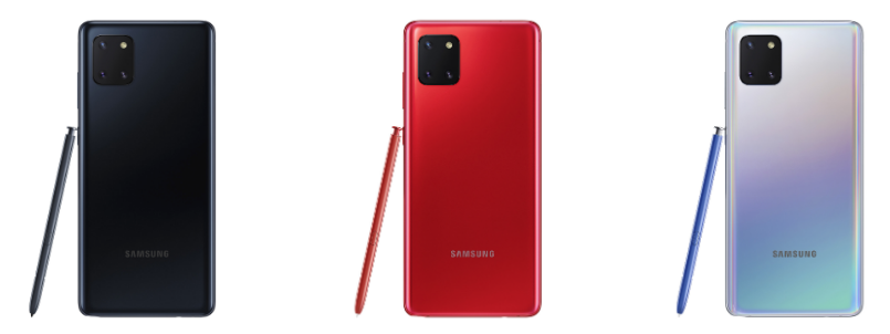 갤럭시노트10 라이트 색상도 3가지로 아우라 블랙, 아우라 레드, 아우라 글로우 구성되어 있습니다. 색상으로 갤럭시S10과 차별화를 제시하고 있습니다.