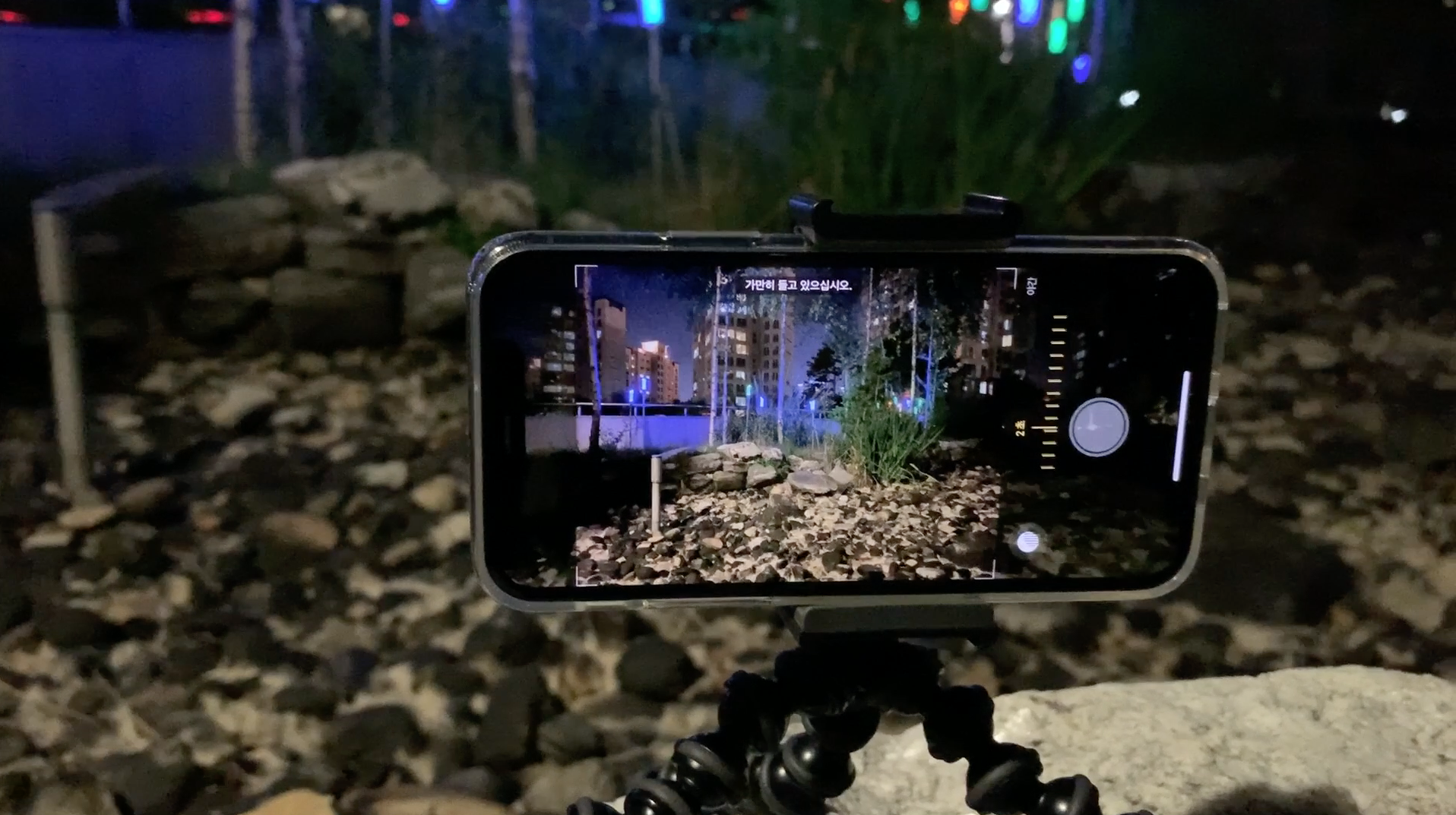 삼각대에 올리고 촬영을 하면 촬영 시간이 더 길게 늘어납니다. 아이폰11, 아이폰11 프로가 움직임이 없다는걸 감지해 야간 모드 사진의 촬영 시간을 늘려주게 되는 것입니다. 즉, 최고의 야간 모드 사진을 찍고자 한다면 삼각대에 올려두고 찍으면 더 좋은 사진을 찍을 수 있습니다.