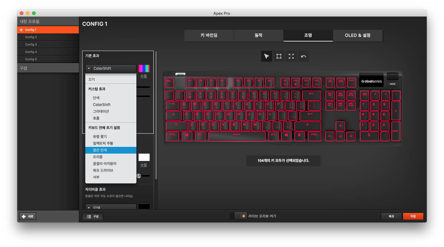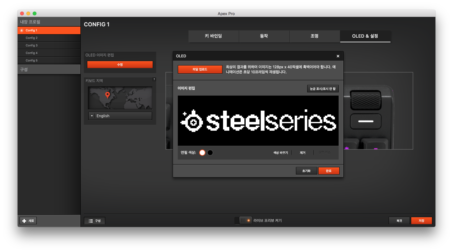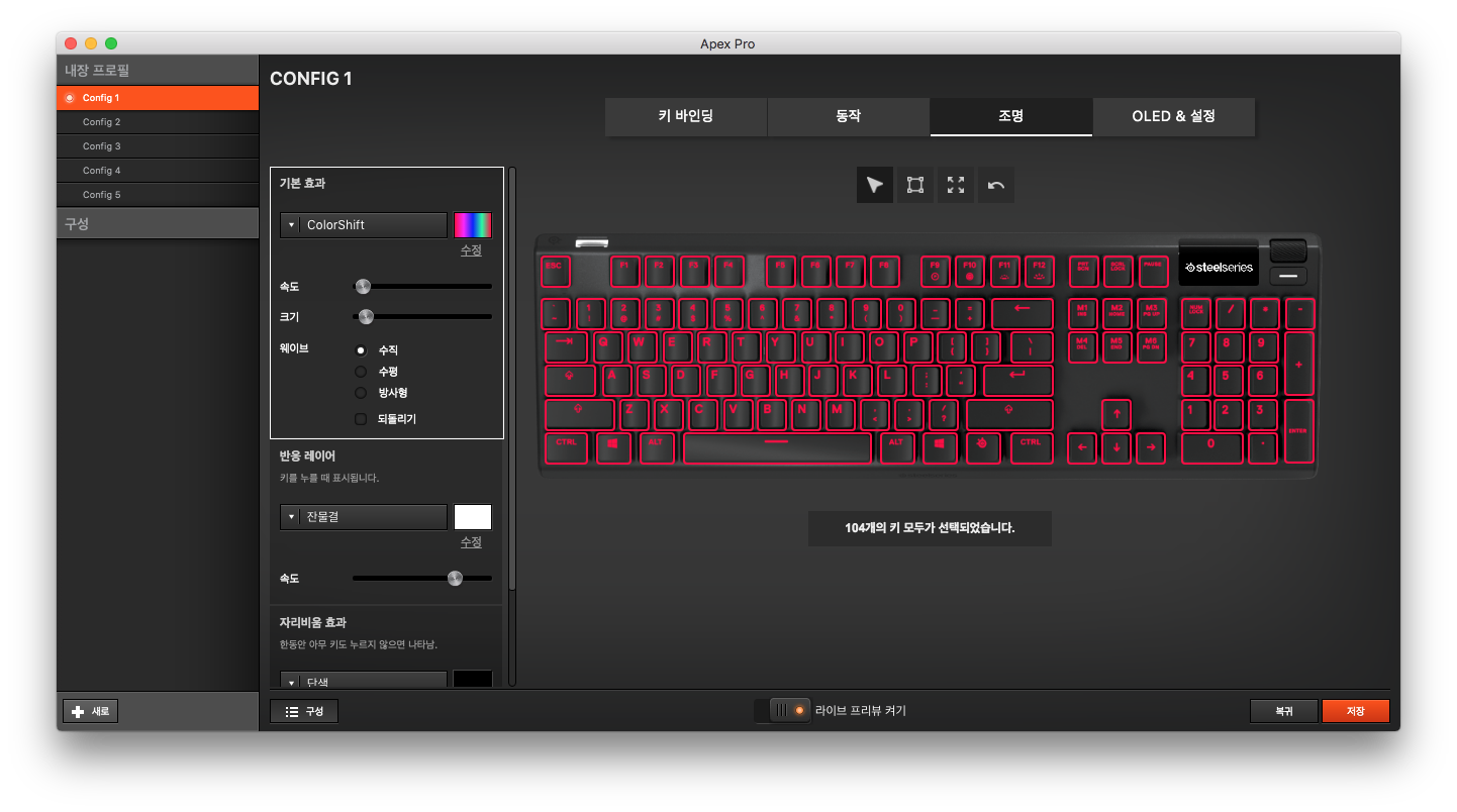 이런 설정들은 스틸시리즈 엔진3 프로그램에서 할 수 있습니다. 스틸시리즈 홈페이지 가면 다운로드 받을 수 있습니다.
