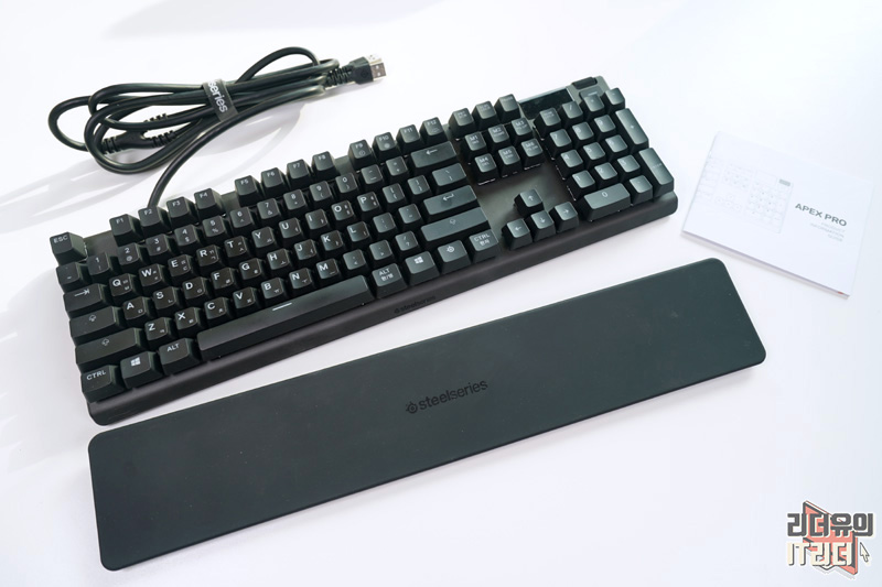스틸시리즈 APEX Pro 구성품은 간단합니다. 키보드와 손목 받침대만 제공됩니다.