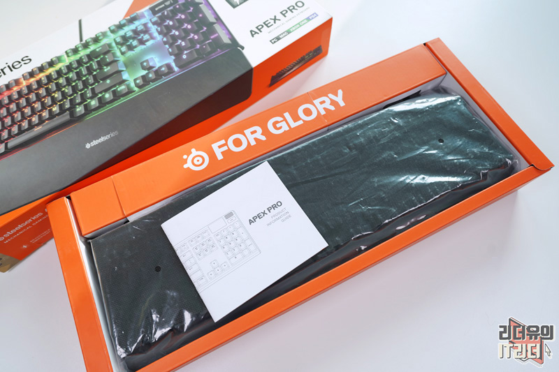 스틸시리즈 APEX Pro 구성품은 간단합니다. 키보드와 손목 받침대만 제공됩니다.