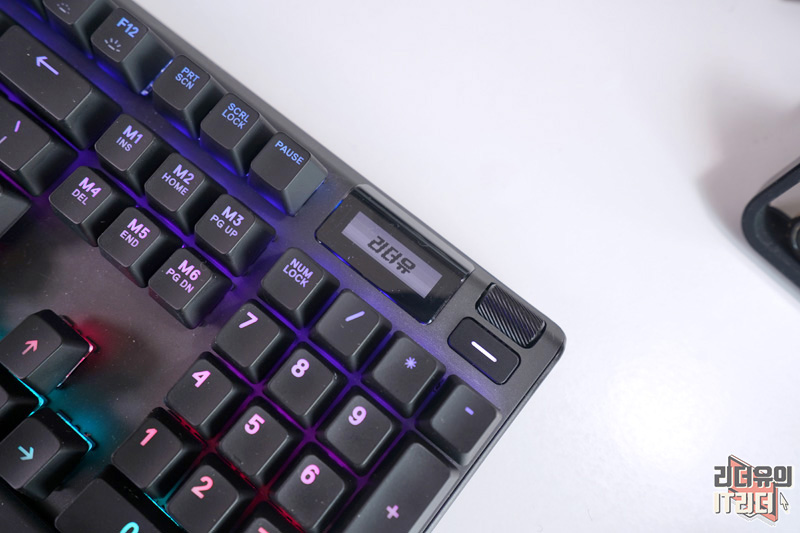 키보드 우측 상단에는 OLED 디스플레이를 두어 설정 조정, 프로필 변경, 게임의 중요한 정보를 확인할 수 있게 되어 있습니다.