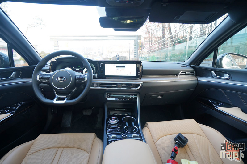 화려한 실내를 가진 2020 기아 K5 입니다. 가운데에는 큼지막하게 울트라 와이드 디스플레이가 있어 실내 고급스러움을 한층 높여주고 있습니다.