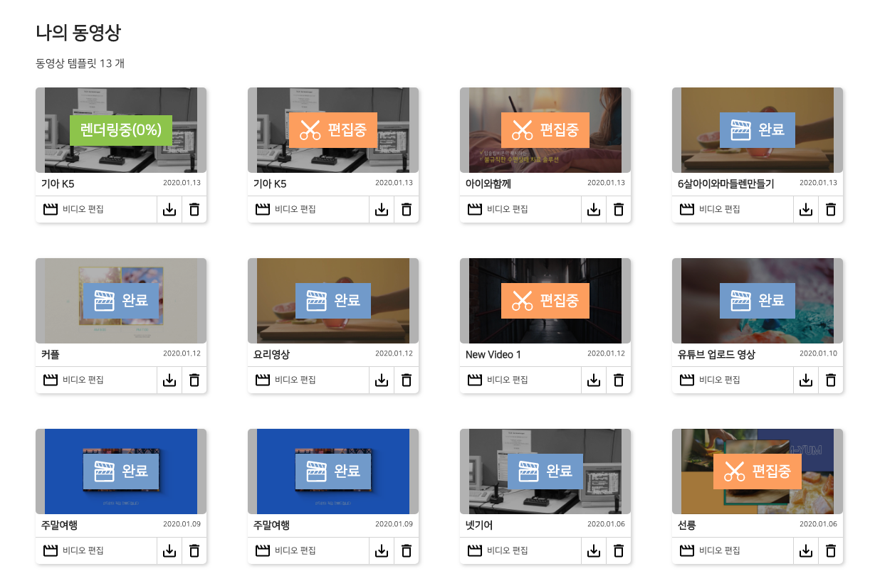 완료를 하면 나의 동영상에 리스트로 확인이 가능합니다. 다양한 시도를 해볼 수 있어서 좋습니다.