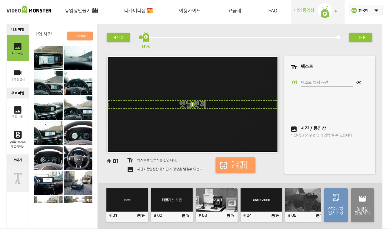편집하러 가기를 하면 나의 사진, 나의 동영상에서 소스를 가져올수도 있고 무료 사진, 게티이미지 무료 동영상에서 소스를 가져올 수 있습니다.