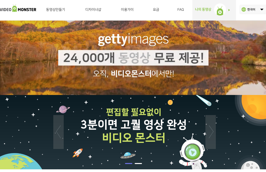비디오몬스터는 동영상을 만들고 싶은 분들을 위해 모든걸 준비한 사이트 입니다. 영상 퀄리티도 좋고 다양한 분야의 영상들을 골라가면서 만들 수 있어 최적의 영상 작업이 가능합니다. 게티이미지의 24,000개 동영상까지 무료로 제공되서 활용도가 높으니 꼭 활용해 보시기 바랍니다.