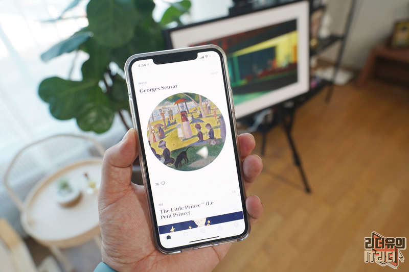 모든 준비가 완료되면 기본 셋팅되어 있는 그림이 나옵니다. 집안에서 명화를 만나는 기분은 기대 이상으로 좋습니다. 단순히 디지털 화면에 그림이 보이는게 아니라 진짜 액자를 보는 느낌입니다.