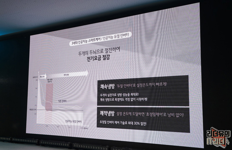 인공지능 기술은 곧 전기 요금 절감으로 이어집니다. 듀얼 인버터로 빠르게 쾌속 냉방을 해주고 설정 온도에 도달하면 쾌적 냉방 모드로 들어가 초정밀제어로 섬세한 관리를 보여준다고 합니다. 무작정 돌리는 에어컨이 아니라 그때 그때 상황에 맞게 힘을 조절하기 때문에 에너지 절감 효과를 크게 볼 수 있습니다.