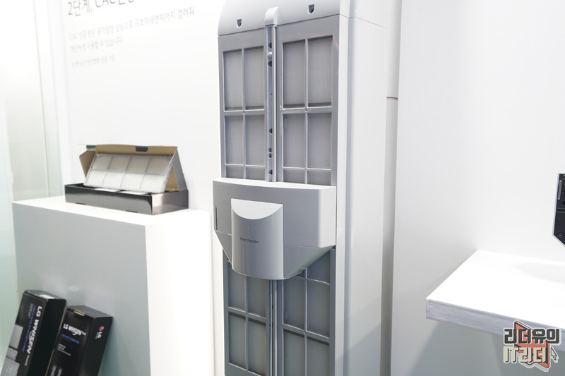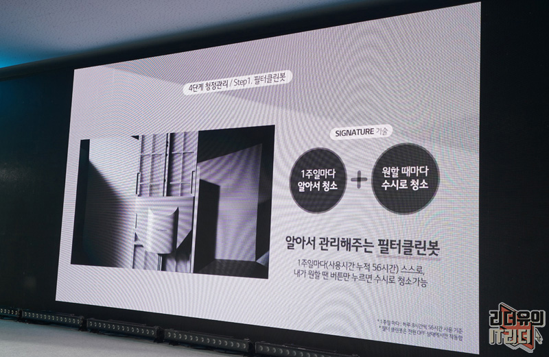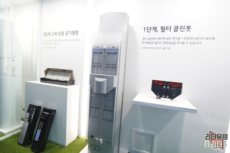 1단계는 필터 클린봇이 탑재되었습니다. 이 기술은 시그니처 에어컨에 먼저 탑재되었던 기술인데요. 2020 LG 휘센 에어컨에 적용하여 프리미엄 에어컨 기술이 다양하게 적용되는 변화를 보여주고 있습니다.