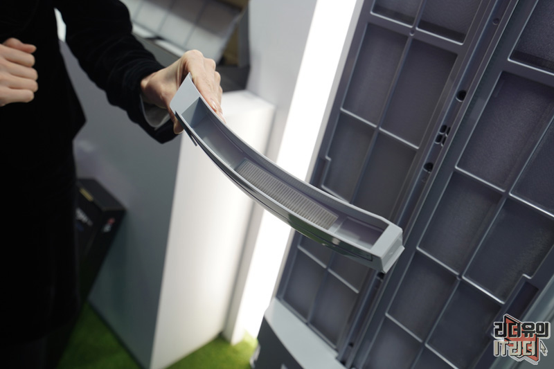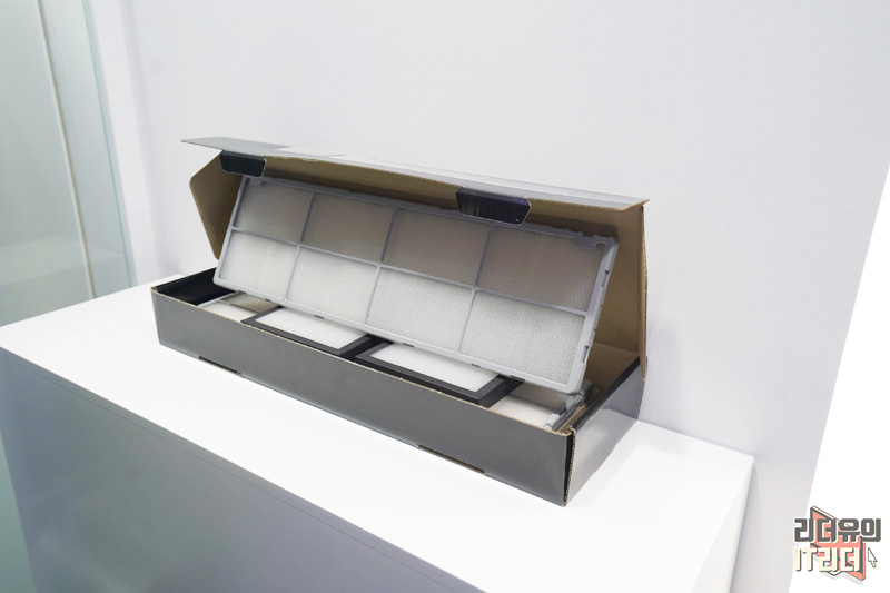 필터 클린봇은 에어컨 뒤쪽에 로봇청소기 하나가 달려 있다고 보시면 됩니다. 위 아래로 움직이며 필터에 있는 먼지들을 흡입해 깨끗한 필터 관리를 해주는 것입니다.