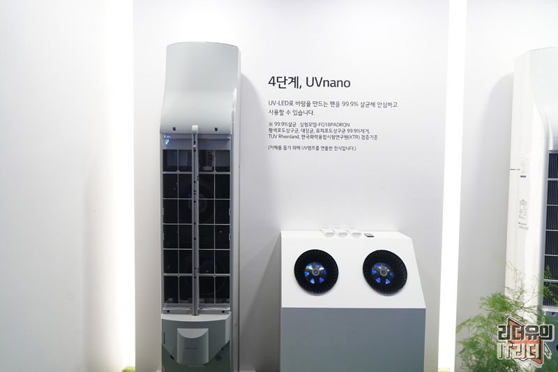 4단계는 UVnano 기능이 들어가 바람을 만드는 팬을 99.9% 살균해 줍니다. 바람이 나오는 곳을 원천적으로 살균해 더욱 안심하고 에어컨을 사용할 수 있게 한 기술 포인트입니다.