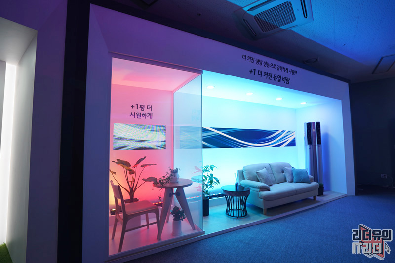 1평이 얼마나 넓은지 보여주는 변화를 통해 시각적으로 그 가치를 보여주고 있습니다. 여유롭게 냉방 성능을 가져갈 수 있다는 건 에어컨 성능에 있어서 가장 중요한 기준점이니 기대해도 좋은 변화 입니다.