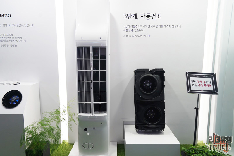에어컨 안에 달린 강력한 자동건조 팬입니다. 보기만 해도 강력해 보이죠? 10분, 30분, 60 선택이 가능해 원하는대로 건조를 확실하게 할 수 있습니다. 습기만 잘 건조시켜 줘도 위생적인 사용이 가능하다는 사실 잊지 마시기 바랍니다. 에어컨 추천시 체크해 봐야 할 중요한 선택 포인트 입니다.