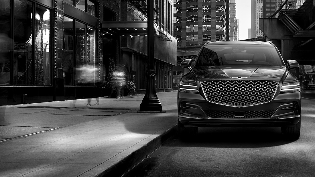 그리고 전면의 두툼한 크레스트 그릴 디자인은 강인한 포스를 느끼게 해주는 포인트입니다. 프리미엄 SUV로서 제네시스 GV80의 존재감을 확실히 어필할 수 있는 매력포인트 입니다.