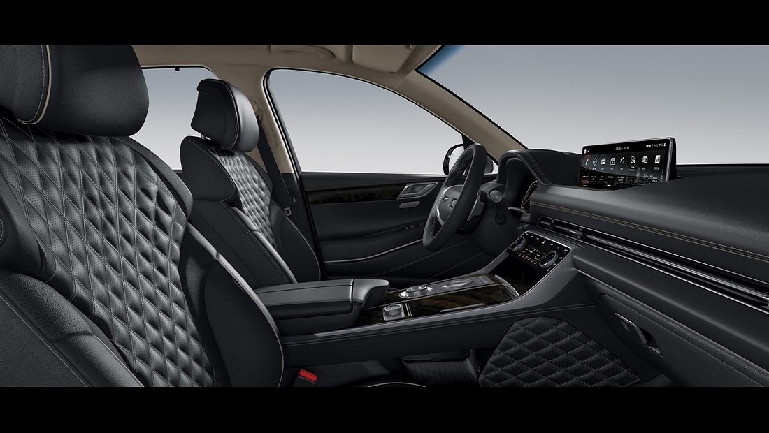 가운데 눈에 띄는 팝업형 14.5인치 인포테인먼트 시스템은 경쟁 모델보다 더 크고 넓게 하는 전략으로 차의 중심을 잡아주고 있습니다. 그리고 아래로 공조기 기능과 기어 조작부를 컨트롤 하기 좋게 슬라이드 형태로 적용해 운전자 중심의 설계가 잘 되어 있습니다.