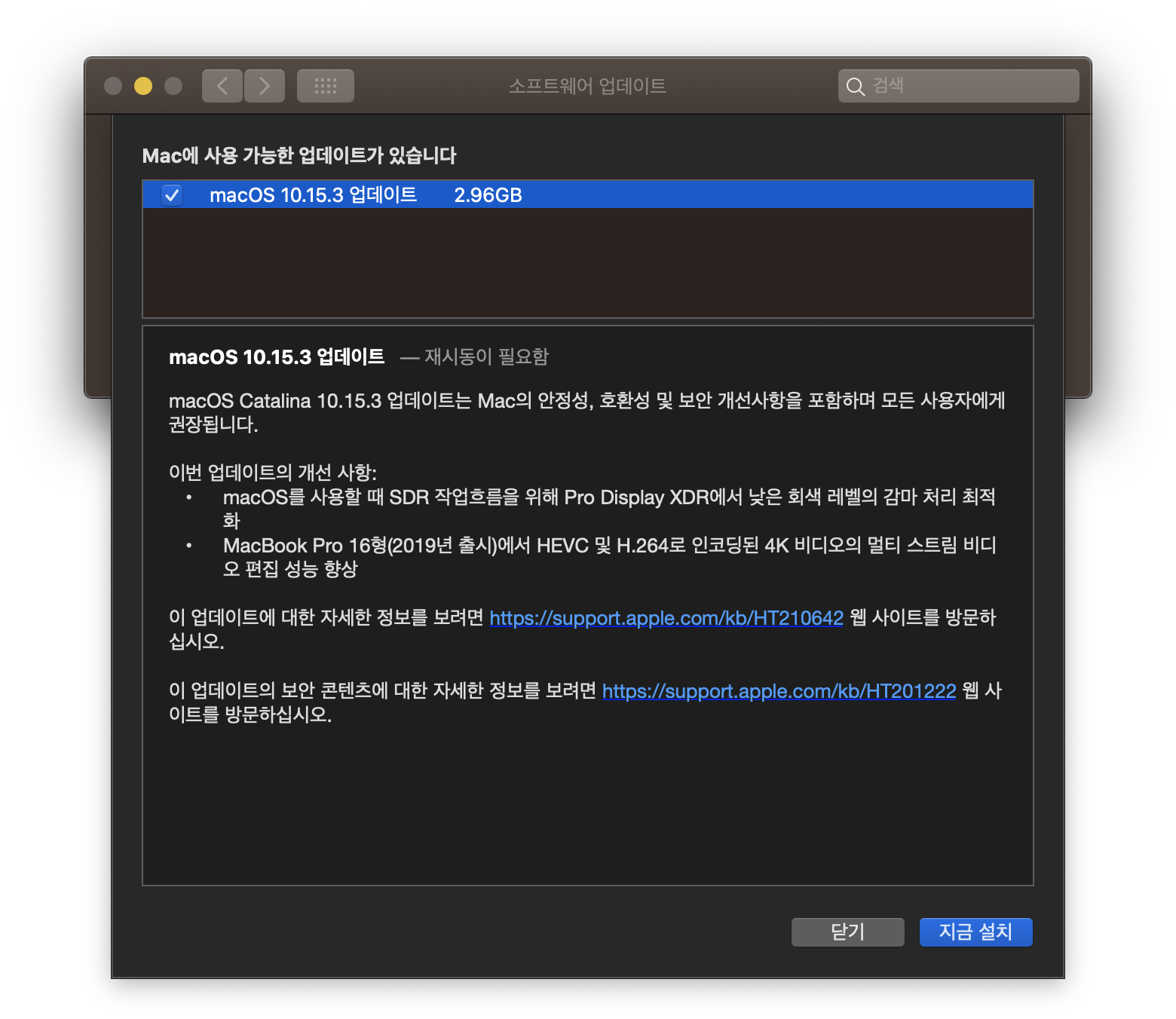 macOS를 사용할 때 SDR 작업흐름을 위해 Pro Display XDR에서 낮은 회색 레벨의 감마 처리 최적화가 진행되었고 맥북프로 16형에서 HEVC 및 H.264로 인코딩된 4K 비디오의 멀티 스트림 비디오 편집 성능이 향상되었습니다. 특정한 대상이지만 참고해 두세요