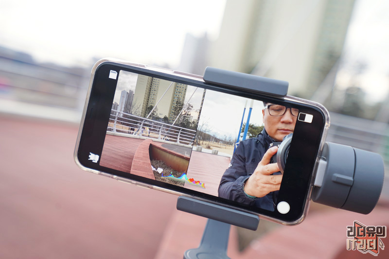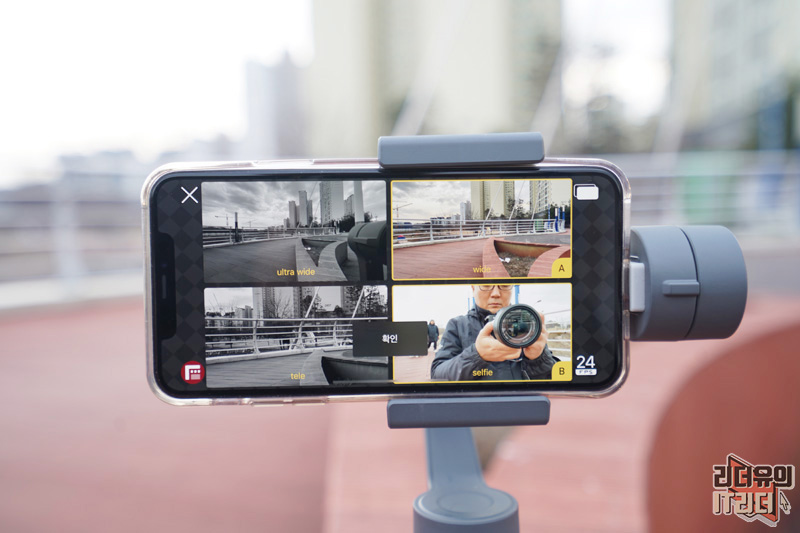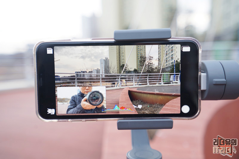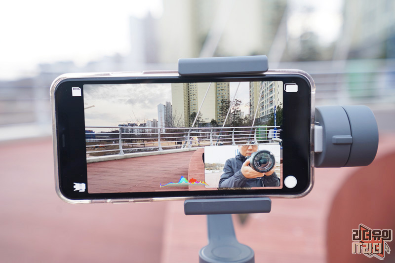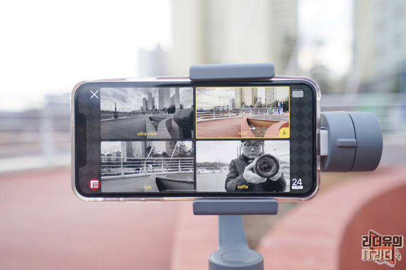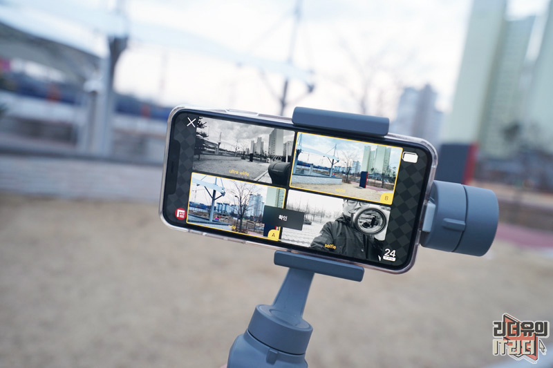 Doubletake by Filmic pro는 전후면 카메라를 동시에 사용할 수 있기 때문에 VLOG나 여행지 영상 촬영시 효과를 볼 수 있습니다. 흔들림 없는 영상을 위해 짐벌을 사용하면 좋겠죠. 제가 사용한 짐벌은 DJI 오즈모 모바일2 입니다.
