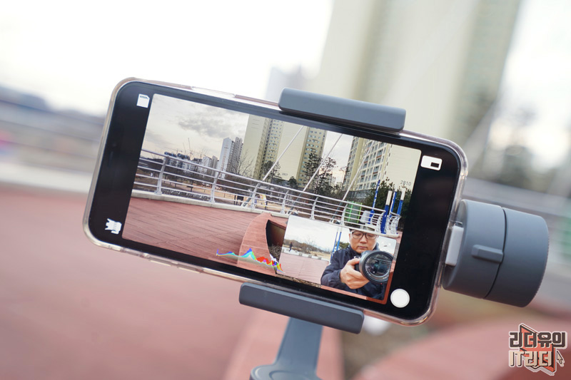 Doubletake by Filmic pro는 전후면 카메라를 동시에 사용할 수 있기 때문에 VLOG나 여행지 영상 촬영시 효과를 볼 수 있습니다. 흔들림 없는 영상을 위해 짐벌을 사용하면 좋겠죠. 제가 사용한 짐벌은 DJI 오즈모 모바일2 입니다.