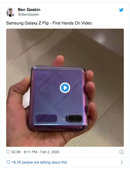 IT전문으로 하는 트위터리안 Ben Geskin이 갤럭시Z 플립 영상을 올렸습니다. 스펙, 사진, 실물 영상까지 다 나왔으니 이제 발표로 확인만 남은거 같네요~