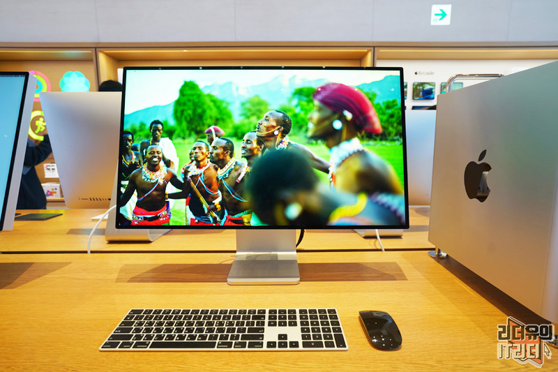 가로수길 애플스토어에는 특수한 나노 텍스처 유리 기술을 적용한 프로 디스플레이 XDR도 볼 수 있습니다. 하나는 적용된 모델, 다른 하나는 아닌 모델이니 확실한 비교가 되실 것입니다. 참고로 스탠다드 글래스 가격은 6,499,000원, 나노텍스처 글래스는 7,899,000원 입니다.