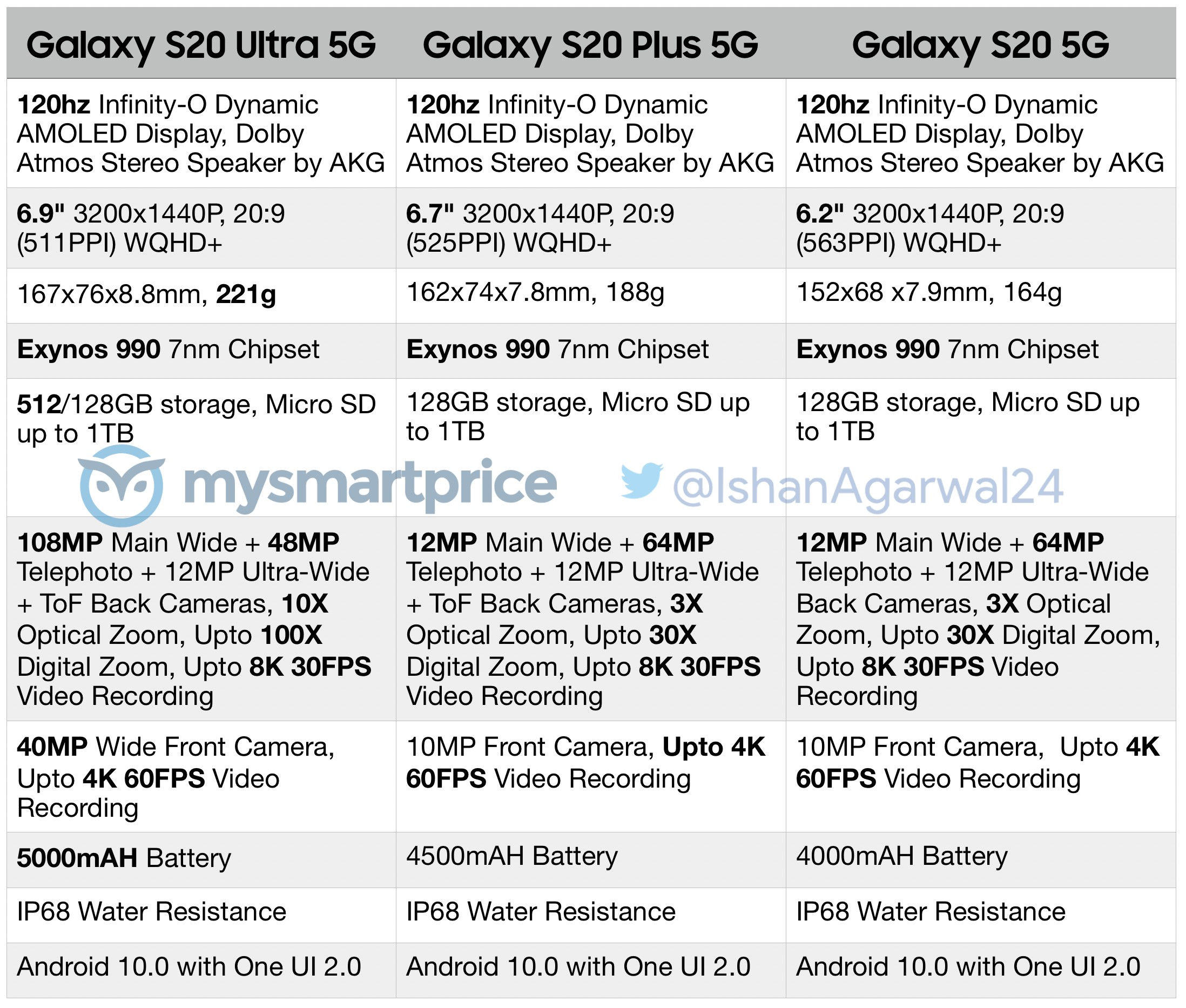 삼성 갤럭시S20, 갤럭시S20 플러스, 갤럭시S20 울트라 가격까지 유출되었습니다. 공개된 스펙에서도 약간 달라진 상황인데요. 유출된 가격 정보까지 확인해 보시기 바랍니다.