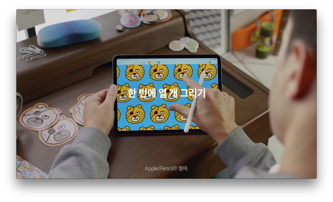 이렇게 하나의 영역을 그리면 동시에 여러 영역이 똑같이 그려집니다. 쉬우니까 아이패드 캠페인 영상에서는 10개 그리기로 가볍게 이야기했지만 더 많이 그리기도 가능합니다.
