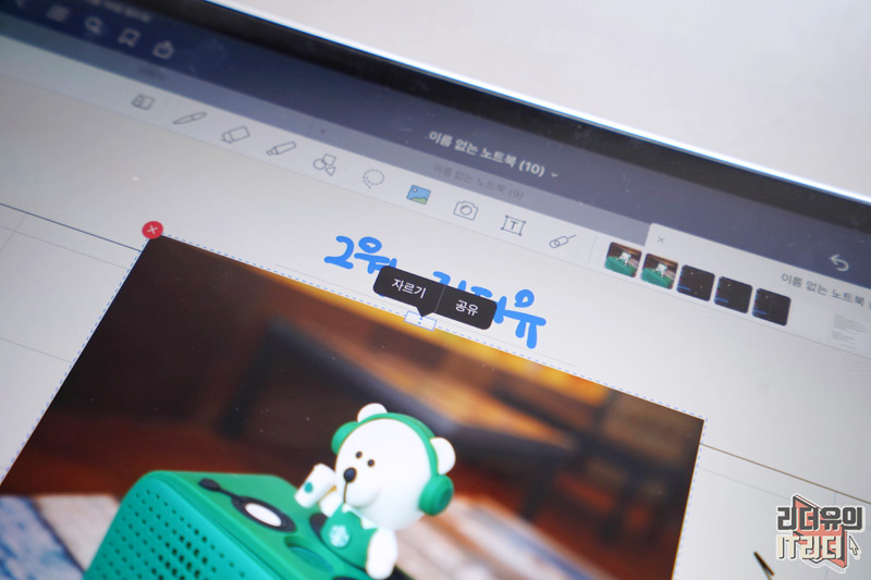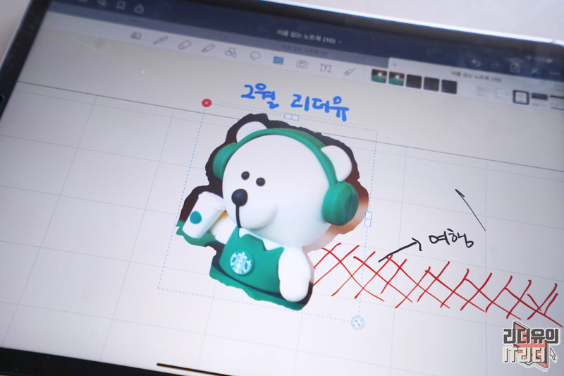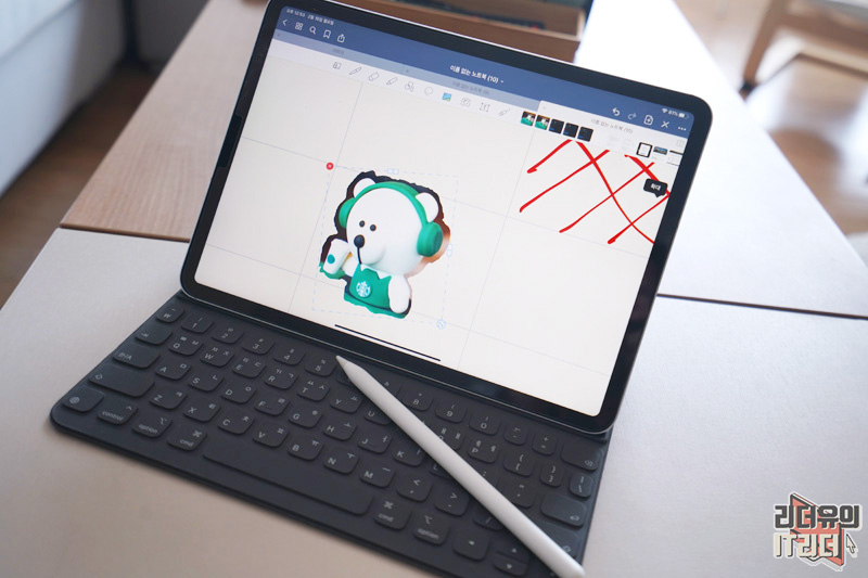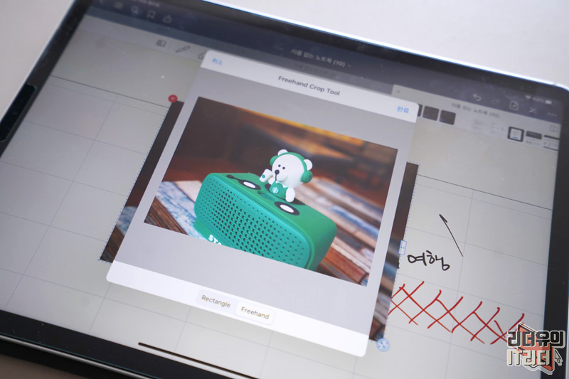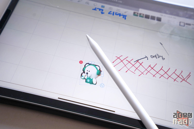이렇게 이미지도 넣을 수 있는데요. 애플펜슬을 이용해 이미지에서 원하는 부분만을 따서 붙일 수가 있습니다.