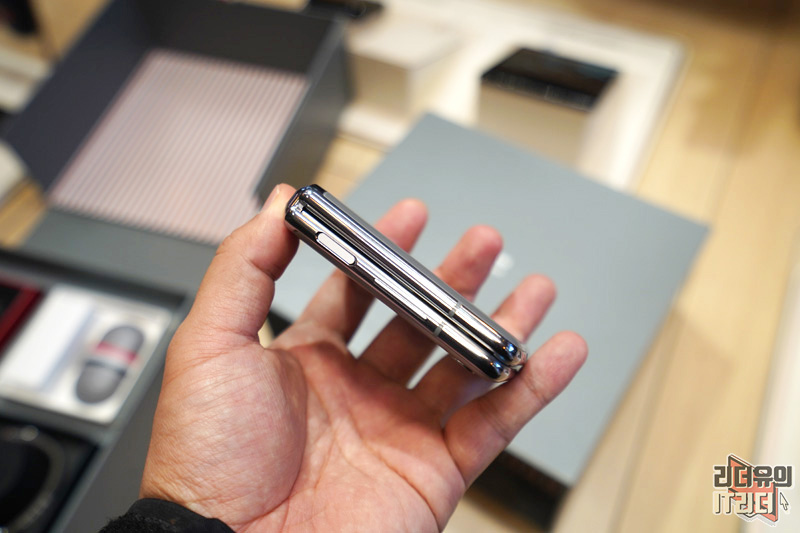 갤럭시Z 플립 톰브라운 에디션 가죽 케이스를 장착한 모습입니다. 가죽 케이스는 나름 고급스럽지만 워낙 본체 이미지가 예뻐서 생폰으로 쓰는게 더 좋을 것 같습니다.