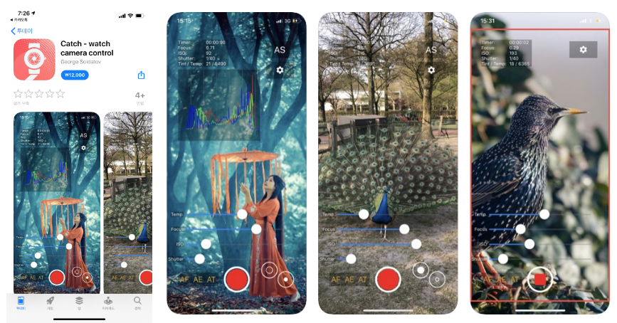 이번 영상 프로젝트를 위해 제작진은 새로운 앱 Catch를 개발했습니다. 아이폰 카메라 설정값 (ISO, WB, 초점 등)을 설정할 수 있는 앱으로 애플워치를 이용해 멀리서 수동으로 제어도 가능하다고 합니다. Camera와 Apple watch의 합성어로 Catch라고 이름을 정했다고 하네요.