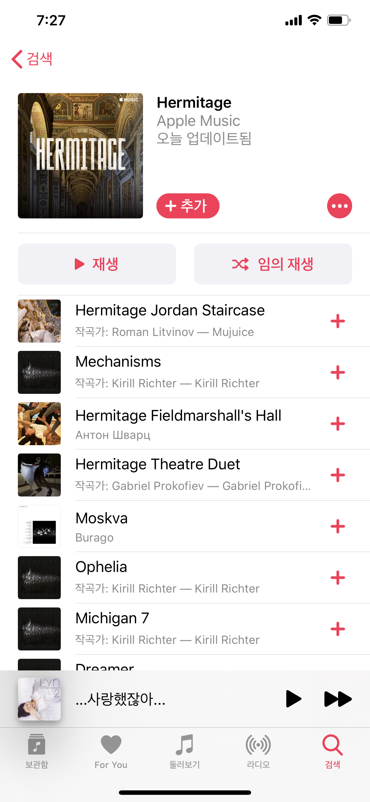 러시아의 신고전주의 작곡가 키릴 리히터(Kirill Richter)가 작곡한 창작곡, 일부 연주 공연 및 라이브 무대가 애플 뮤직 Hermitage 플레이리스트로 올라와 있습니다.