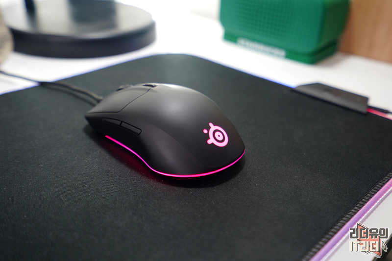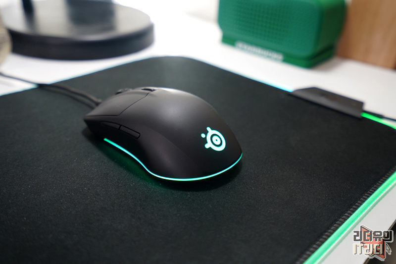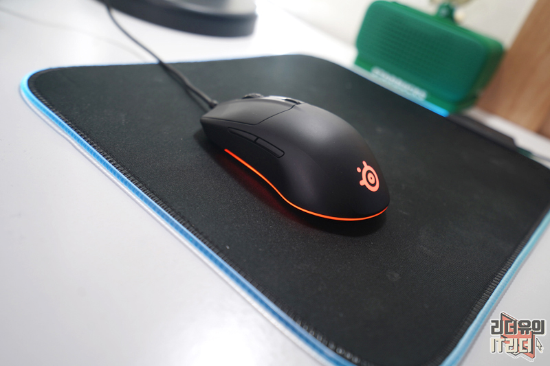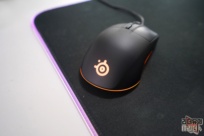 스틸시리즈 Rival3를 PC에 연결하면 완전히 달라진 디자인 포인트를 확인할 수 있습니다. 스틸시리즈의 로고 부분, 바닥면에 라인으로 그려진 LED 라인은 게이밍 마우스의 화려한 매력을 보여주고 있습니다. 가격이 저렴한 마우스들은 이런 조명도 약한데요. 스틸시리즈는 아주 선명한 조명을 보여주고 있습니다. 그리고 RGB 조명을 통해 색상이 계속 변하기 때문에 컴퓨터가 환경이 화사해집니다. 제가 사용하는 마우스 패드도 스틸시리즈 제품인데요. 두개의 조명이 조화를 이뤄서 기분이 좋네요
