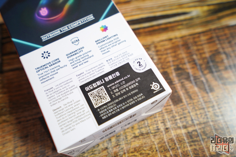 스틸시리즈 공식수입원은 이도컴퍼니로 이렇게 정품 인증 스티커가 있습니다. 정품 등록을 하시면 2년간 무상 보증으로 추후 AS를 간편하게 받을 수 있으니 참고하시기 바랍니다. 이도컴퍼니 바로가기!