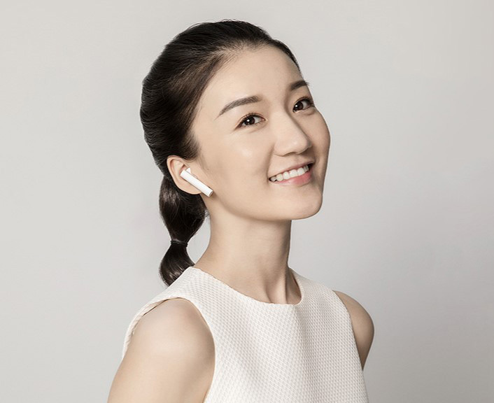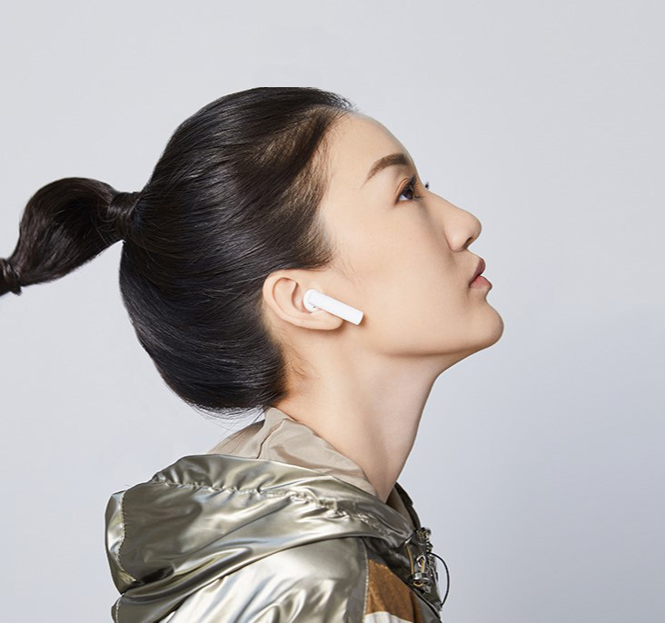 샤오미 Air 2S를 귀에 착용한 모습입니다. 언뜻 보면 에어팟을 착용한 듯한 느낌을 주고 있습니다. 하지만 다리 두께가 두껍게 표현되어 짝퉁 이미지를 보여주고 있습니다. 그나마 샤오미가 양심을 찾은 선택인데요.