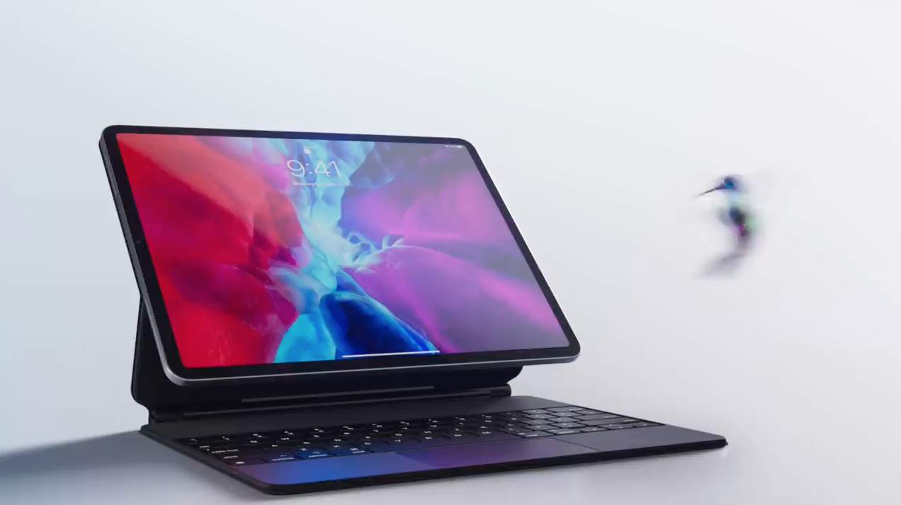 그리고 새처럼 가벼운 아이패드 프로 4세대를 보여주고 부드러운 날개짓처럼 매직 키보드 각도를 조절할 수 있음을 보여줍니다.