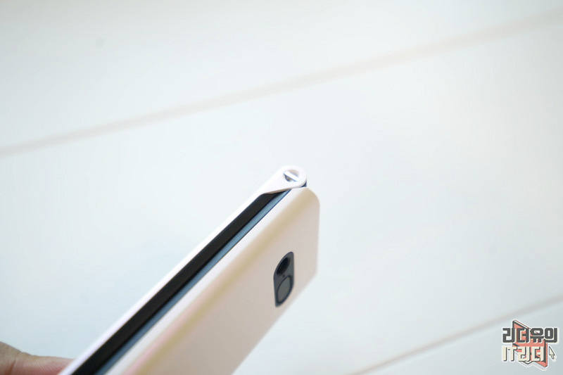 왼쪽면에는 이어폰 단자와 볼륨 버튼이 있습니다. 안쪽에는 블랙 프레임으로 되어 있어 투톤의 디자인을 볼 수 있습니다.