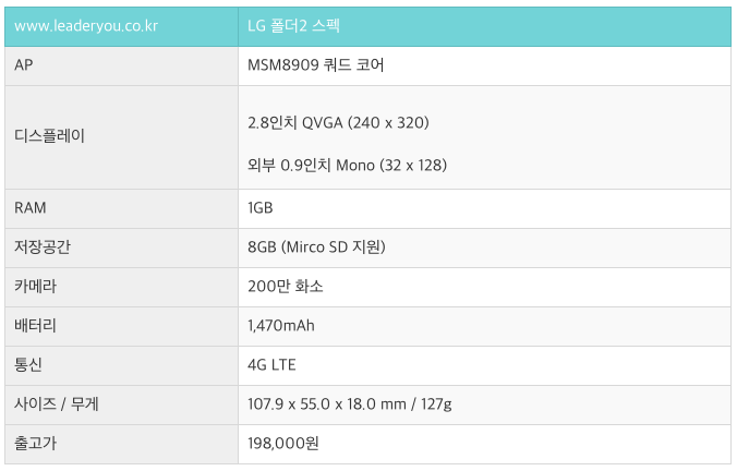 LG 폴더2 스펙은 일반적인 폴더폰이기 때문에 좋은것은 아닙니다. 게임이나 기타 스마트한 기능을 지원하는 것이 아니기 때문에 특별히 걱정하지 않으셔도 됩니다.