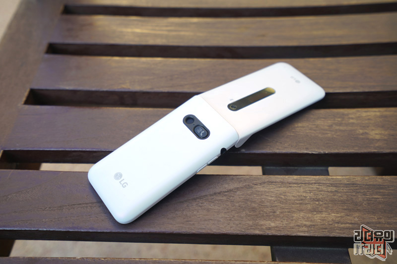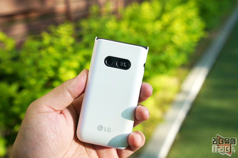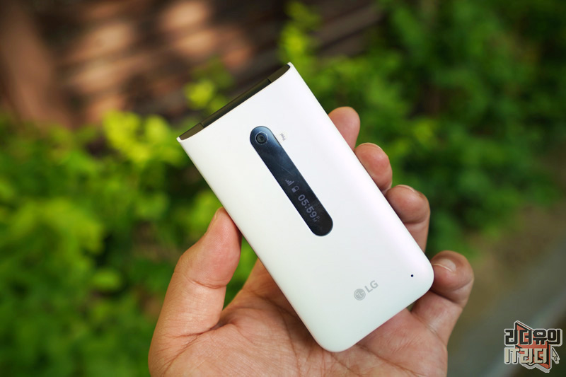 LG 폴더2를 펼친 뒷 모습입니다. 올 화이트로 깨끗한 디자인 매력을 보여주고 있습니다.