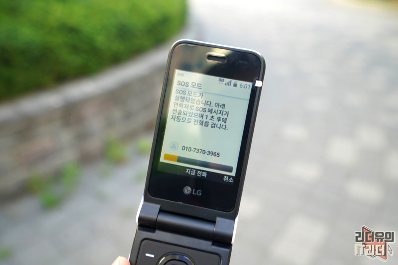 LG 폴더2는 키즈폰으로 아이들이 안심하고 사용할 수 있도록 SOS 버튼을 별도의 핫키로 제공하고 있습니다. 위급 상황시 후면 버튼을 빠르게 3번 눌러주는 것만으로 지정된 번호로 SOS 전화가 가고 위치 전송이 되니 안심하고 사용할 수 있는 매력적인 기능입니다.