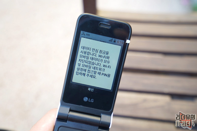 데이터가 차단되어 PIN 번호를 눌러야 사용 가능합니다. 폴더폰이지만 데이터 사용이 가능한 폰이기 때문에 안심하고 사용할 수 있는 기능입니다.