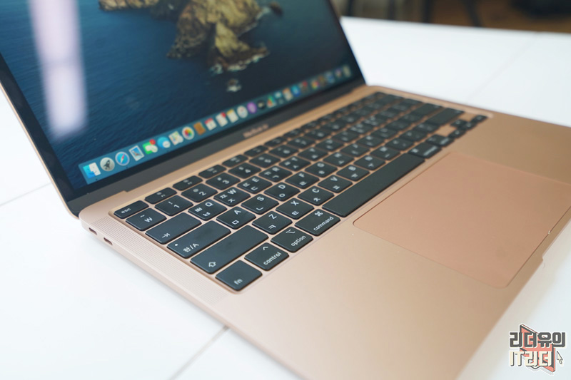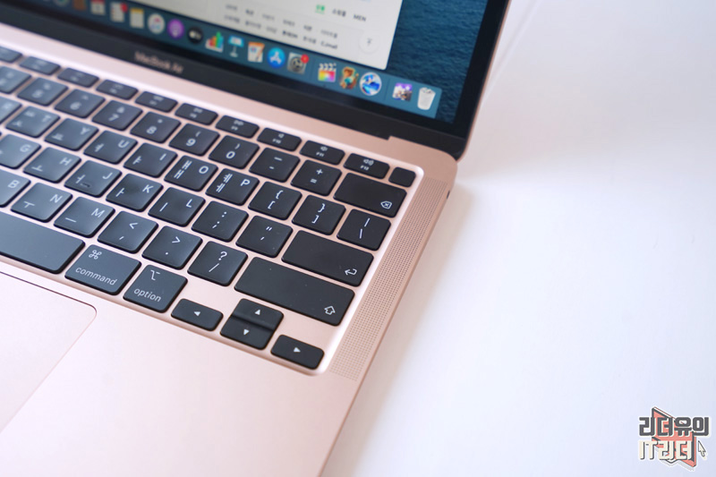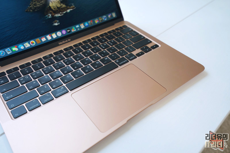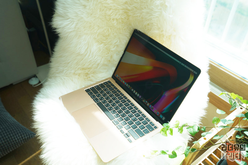 참고로 맥북에어 2020은 3가지 색상이 있습니다. 실버, 스페이스 그레이, 골드입니다. 골드 색상은 살짝 핑크빗이 도는 우아한 골드색으로 누구나 좋아할 수 있는 색상입니다. 그리고 맥북에어에만 있는 색상이라 유니크한 색상의 매력도 있습니다.