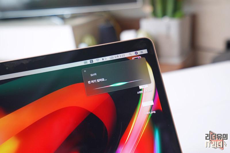 맥북에어는 아이폰 처럼 시리를 이용해 음성 컨트롤도 지원합니다. '시리야' 부르시면 맥북에어가 응답하고 관련 명령을 수행해 줍니다.