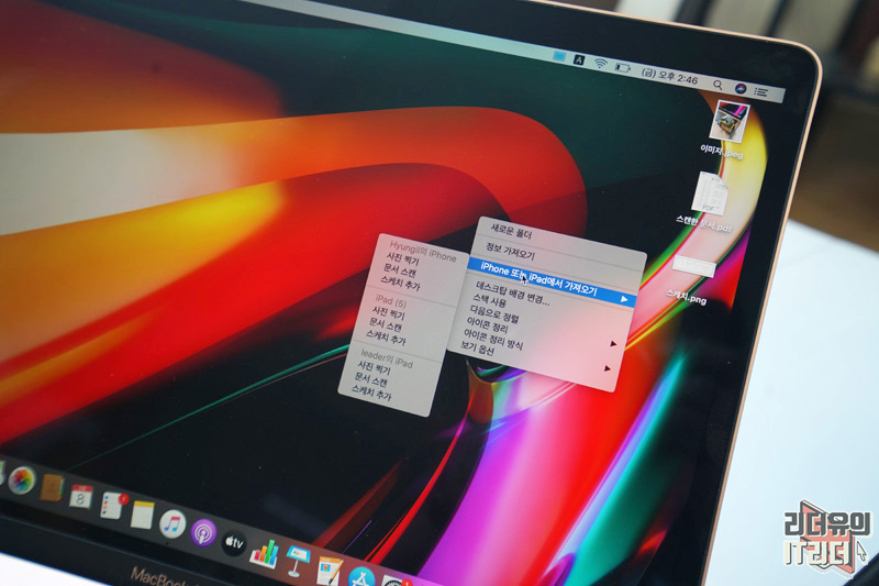 맥북에어 화면에서 아이폰, 아이패드에서 가져오기를 이용해 보세요! 감동할 수 밖에 없는 기능입니다.
