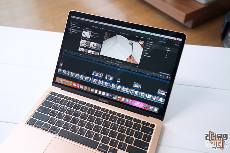 얼마나 성능이 좋은지 파이널컷프로 로 영상 편집도 해봤습니다. 영상 편집용으로 맥북에어가 적합한 모델은 아니지만 FULL HD 랜더링은 적절하게 할 수 있고 4K 랜더링도 가능합니다. 다만 시간이 좀 더 걸리고 발열이 생기게 됩니다.