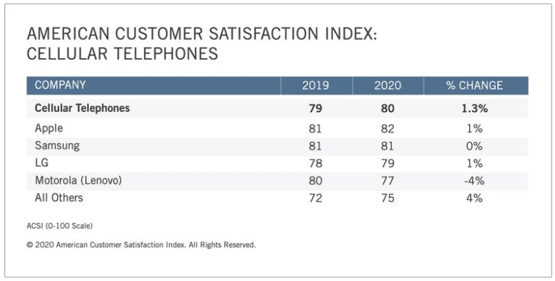 2020 미국 스마트폰 브랜드 만족 순위