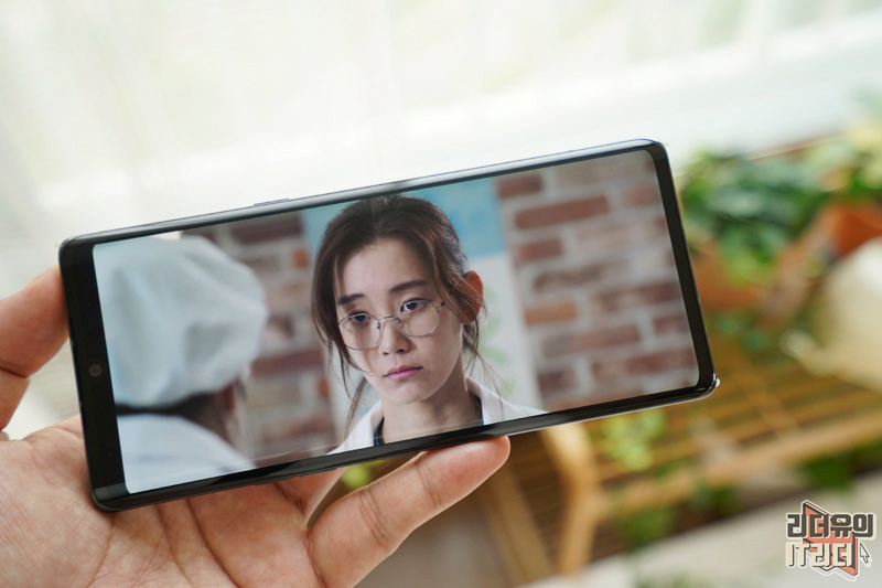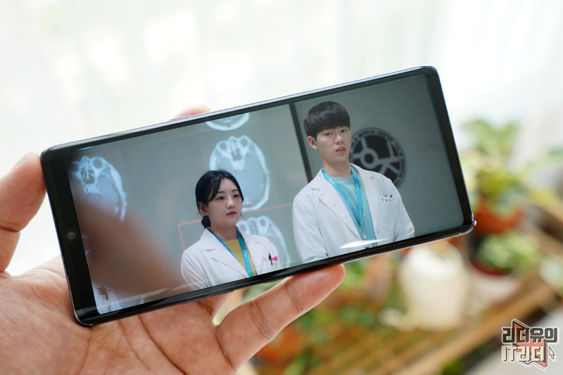 최근 제작되는 영상을 보면 영화가 아니지만 21:9 화면비로 제작된 영상들도 있습니다. 슬기로운 의사생활이 그런 경우인데요. LG 벨벳으로 보면 위아래 레터박스가 거의 없는것을 알 수 있습니다. 일반적인 스마트폰은 위아래 레터박스 영역이 더 넓게 잡혀 실제 화면을 제대로 살리지 못하는 아쉬움이 있습니다. 그래서 LG 벨벳은 최신의 영상 기준으로 볼때는 더욱 큰 화면으로 볼 수 있는 경쟁력을 갖췄습니다.