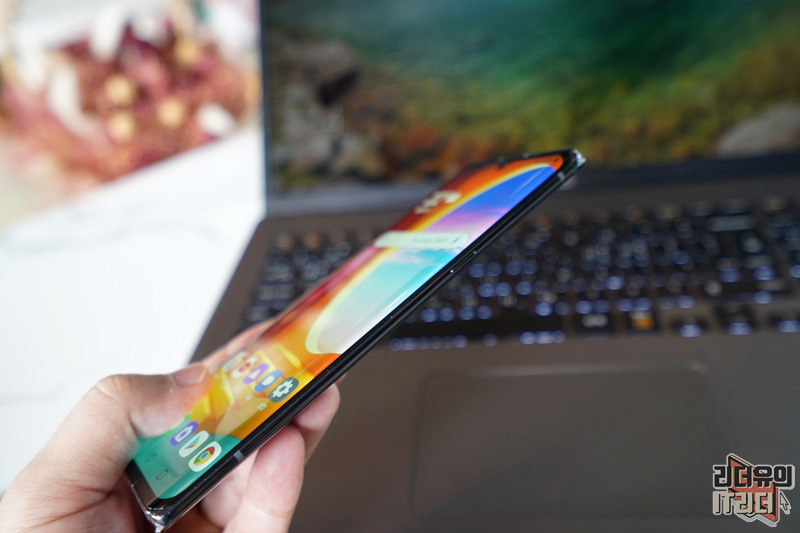 그리고 LG 벨벳이 잡기 편한 이유는 화면 사이드를 보면 라운드가 들어간 3D 아크 디자인이기 때문입니다.