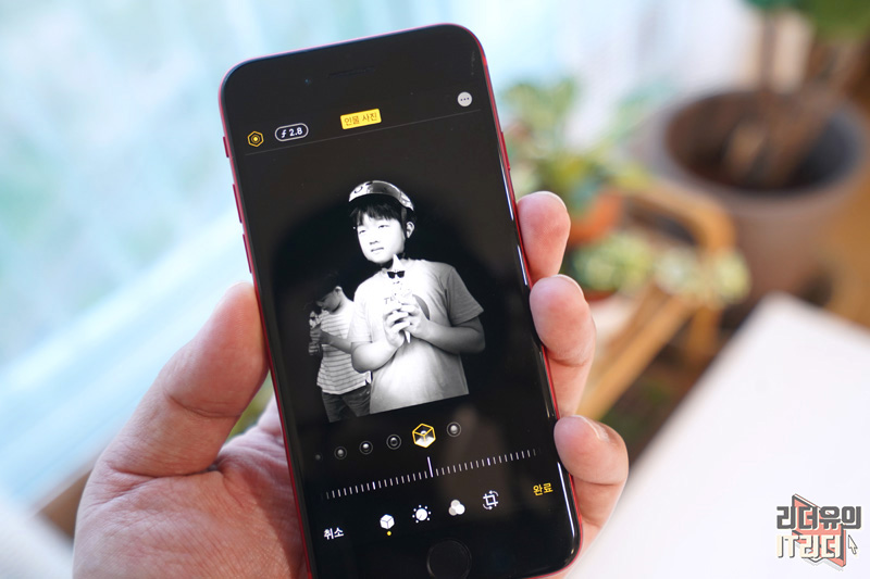 아이폰SE 2세대 인물 사진 모드에 들어가면 심도 조절을 할 수 있게 지원합니다. F를 눌러 F1.4 부터 F16 까지 조절이 가능한데요. 미리 심도 조절을 해도 되지만 그냥 기본 인물 사진 모드로 찍고 그 이후에 조정을 해도 똑같은 효과를 볼 수 있습니다.