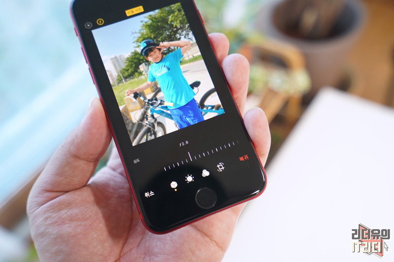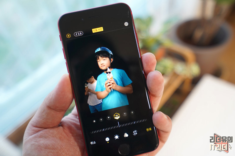 아이폰SE 2세대 인물사진 모드로 촬영된 사진은 f값을 조절할 수 있습니다. 기본 사진 모드로 찍으면 지원하지 않으니 이점은 참고하시고요. 인물 사진 모드로 찍으면 편하게 심도 조절을 하면서 원하는 느낌의 사진을 만들 수 있습니다. 하지만 기본적으로 인물사진 모드로 찍으면 최적의 심도로 찍히게 되니 특별히 조절하지 않으셔도 됩니다.