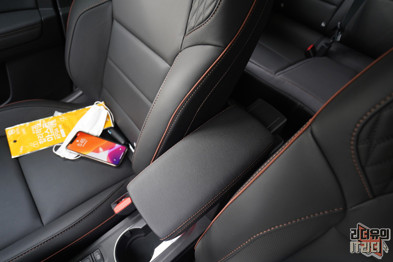 가운데 팔걸이는 앞뒤로 움직이게 되어 있습니다. 수납공간은 없습니다.